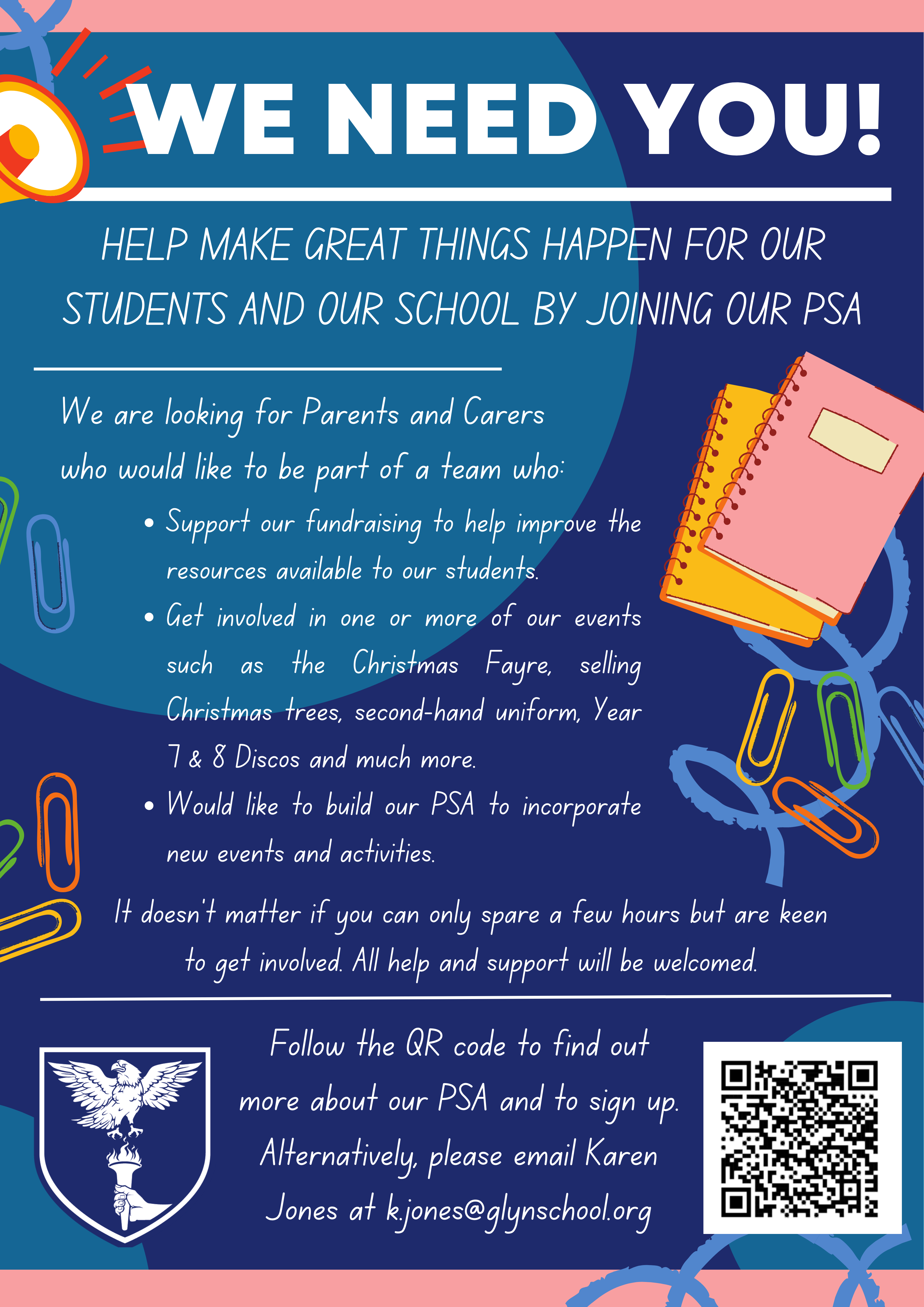 GLF Schools trading as Glyn School is a charitable company limited by guarantee registered in England and Wales (registered number 07551959). Registered office: GLF Schools, Picquets Way, Banstead, Surrey, SM7 1AG.